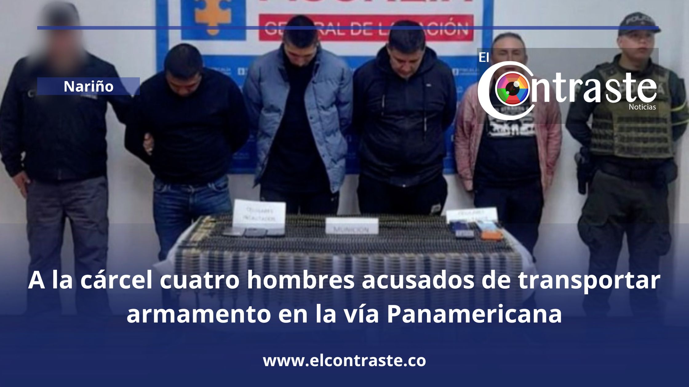 Un juez de la República envió a prisión a cuatro hombres identificados como Jaime Becerra, Yohan Cerón, John Aza y Hernán Betancourt quienes son señalados de transportar 13 mil cartuchos para fusil en un vehículo que transitaba por la vía Panamericana entre Rumichaca y Pasto. Los ciudadanos son acusados por el delito de porte de armas y munición y ahora se espera la investigación correspondiente para determinar su plena culpabilidad en este hecho.