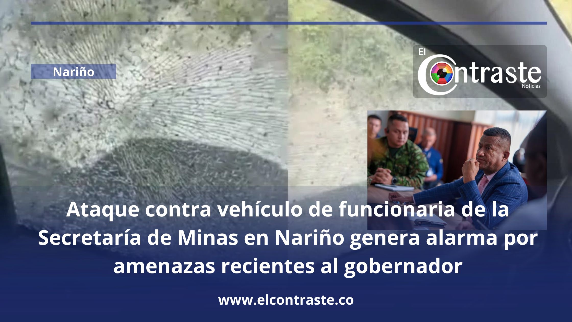 Nariño — El sábado 17 de enero hacia las 4 p.m., el vehículo particular en el que se movilizaba la Subsecretaria de Minas de la Gobernación de Nariño, junto a dos integrantes de su equipo, sufrió un ataque con objeto contundente mientras se desplazaban desde La Llanada hacia Pasto.