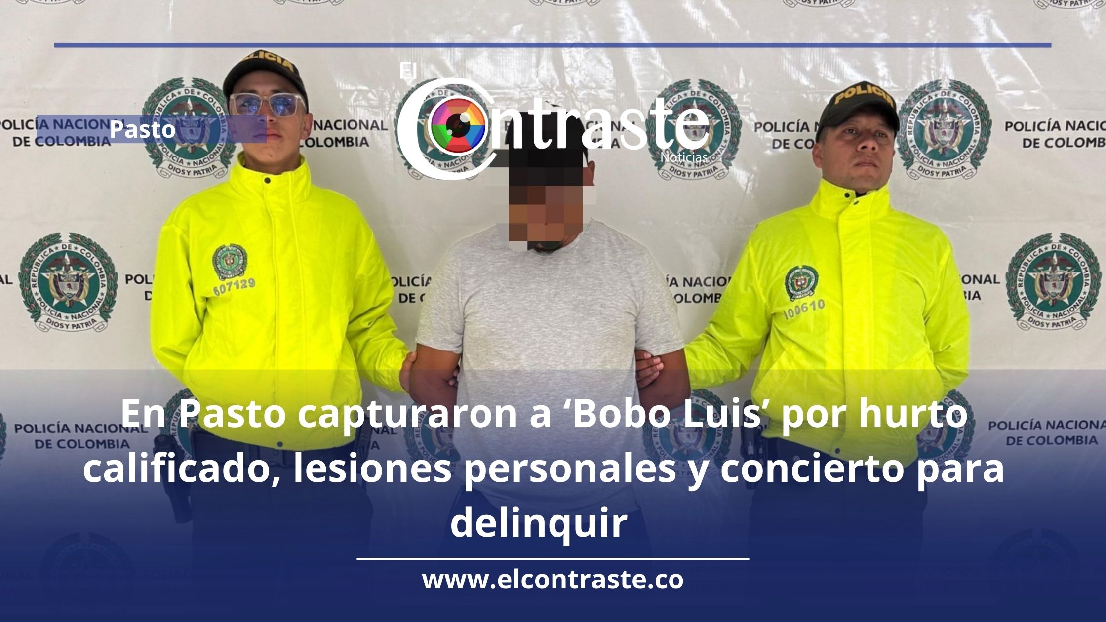 En un operativo liderado por la Policía Metropolitana de Pasto se logró la captura de un sujeto identificado como alias Bobo Luis quien sería el presunto responsable de delitos como hurto calificado y agravado, lesiones personales, receptación y concierto para delinquir. Las autoridades ya le seguían la pista al sujeto quien en las últimas horas fue capturado en una de las zonas céntricas de la ciudad.