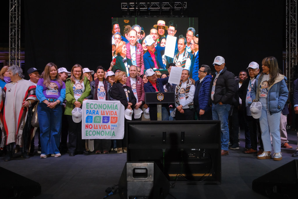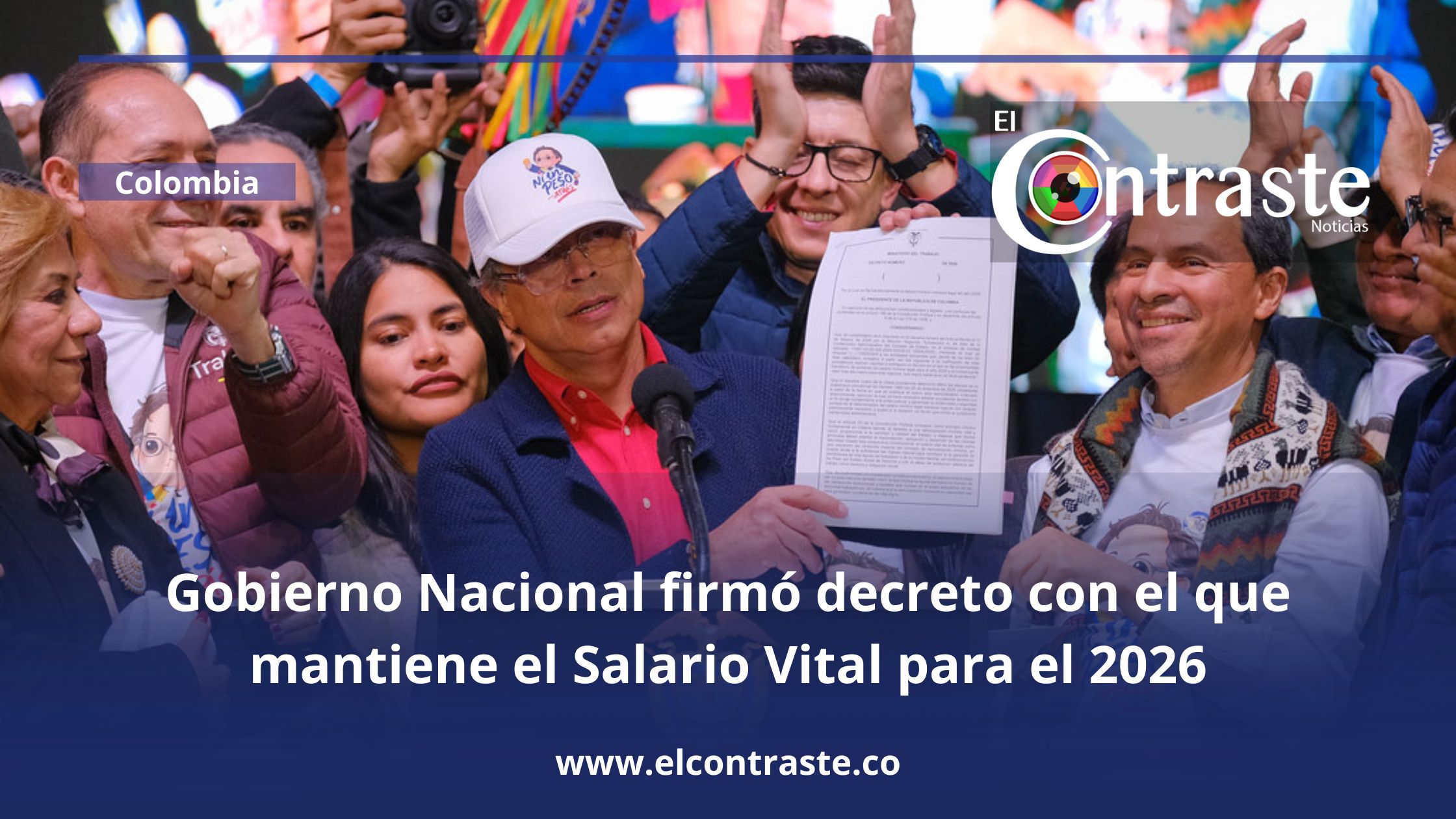 En medio de la Plaza de Bolívar en Bogotá, el presidente Gustavo Petro firmó el nuevo decreto del salario mínimo para el 2026 en donde mantiene la incremento establecido el pasado 31 de diciembre de 2025 en un 23.7%. El decreto empieza a regir desde la fecha y los trabajadores continuarán devengando aproximadamente 2 millones de pesos mensuales.