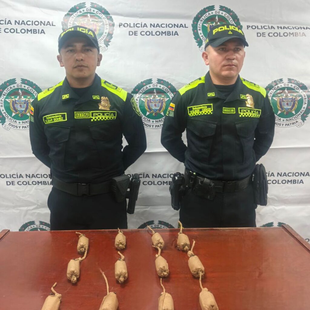 El primer operativo se registró en la Avenida Nueva Aranda, donde un ciudadano fue sorprendido con una bolsa plástica que contenía 18 velas tipo cracker, 300 volcanes y 72 cuetillos, mercancía avaluada en aproximadamente $400.000 pesos.