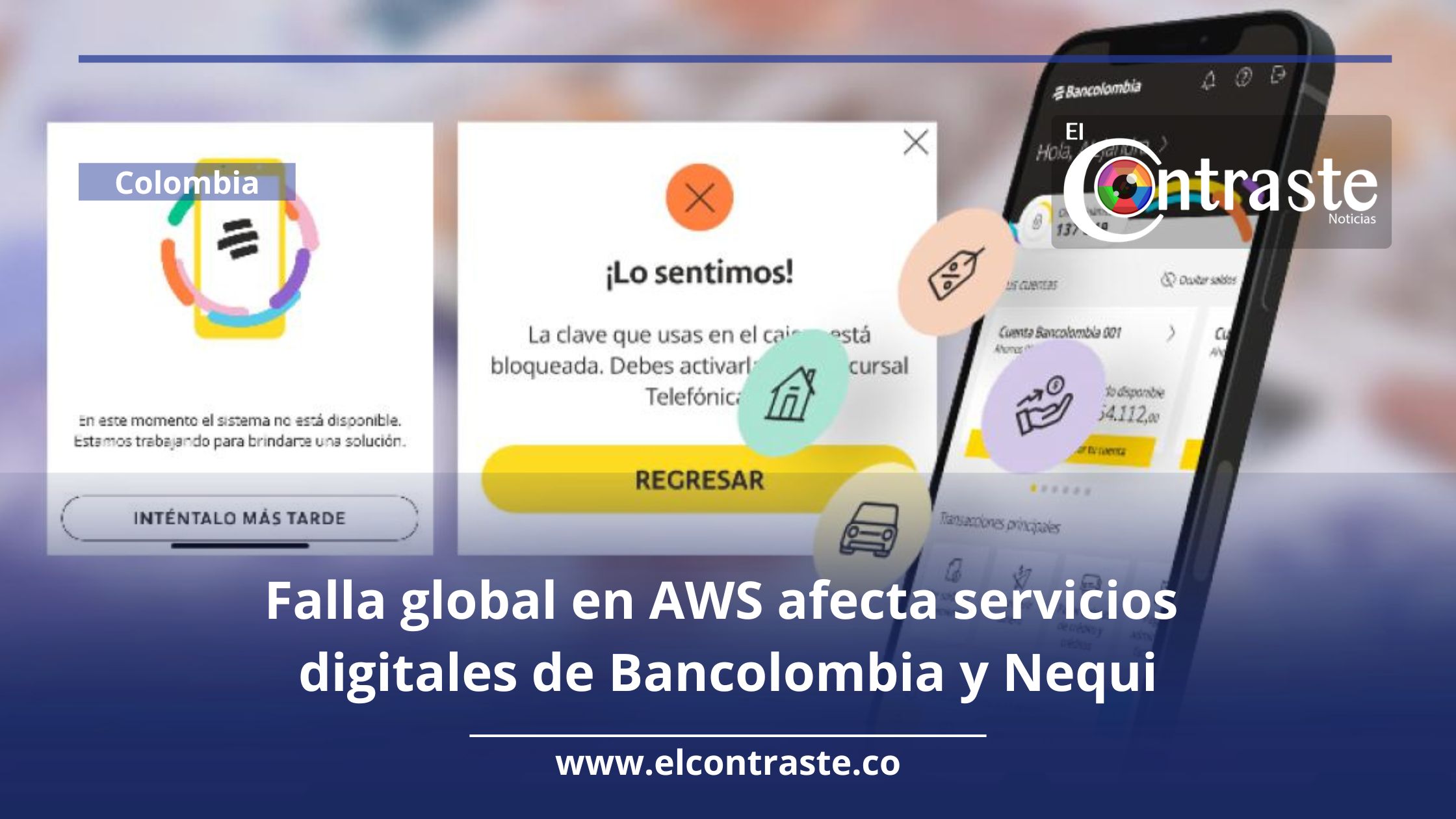 Falla global en AWS afecta servicios digitales de Bancolombia y Nequi