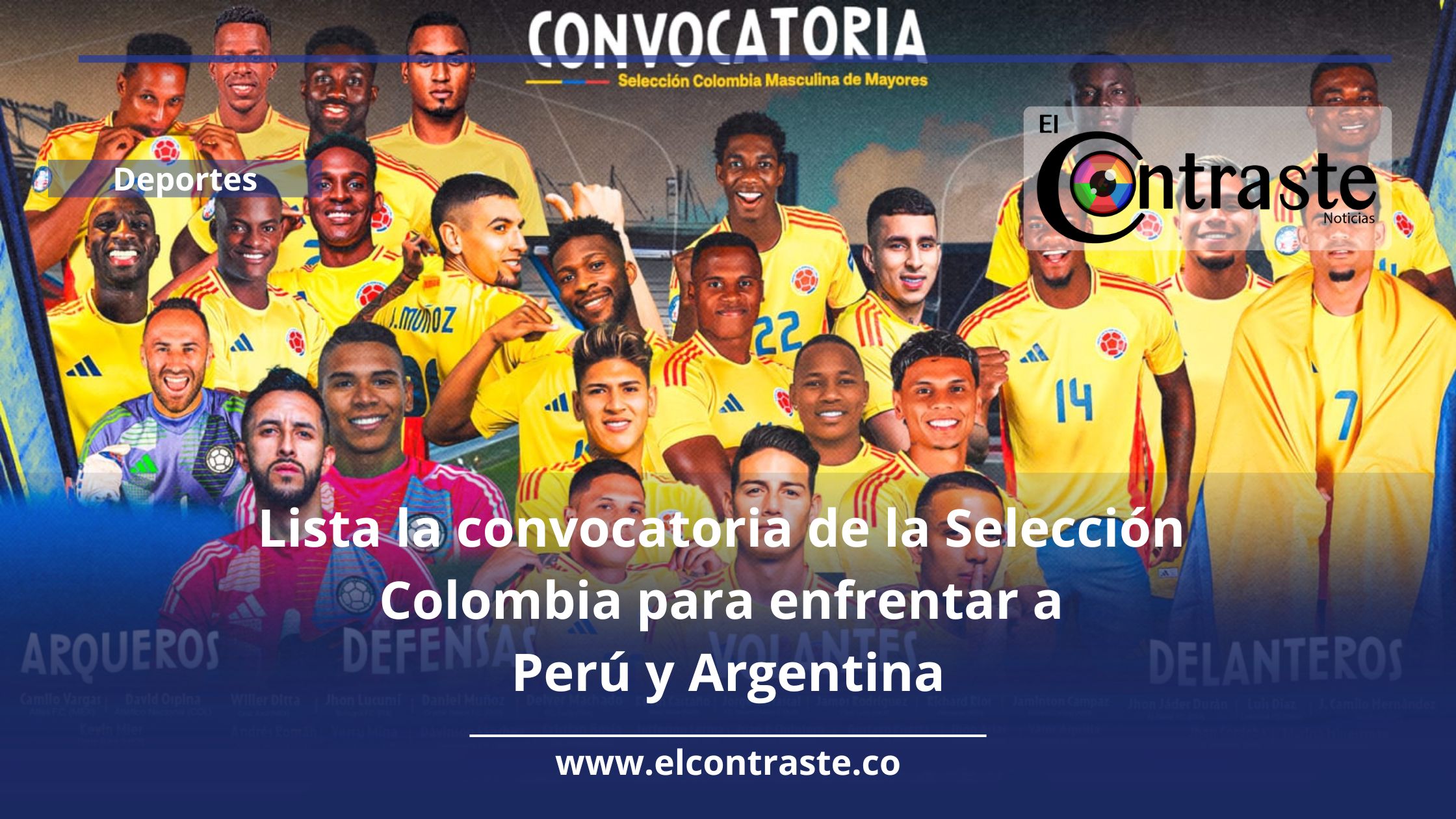 De cara a los partidos frente a Perú y Argentina en las eliminatorias al mundial del 2026, la Selección Colombia dió a conocer la lista de 26 jugadores convocados para estos compromisos. Entre los jugadores a destacar en este llamado están Kevin Mier, Andrés Román, Wilmer Ditta, Juan Camilo Hernández y Marino Hinestroza quienes reciben la confianza del técnico Néstor Lorenzo para asegurar la clasificación a la cita orbital que se disputará el próximo año 2026 en Estados Unidos, México y Canadá y que ya tiene algunas selecciones clasificadas.