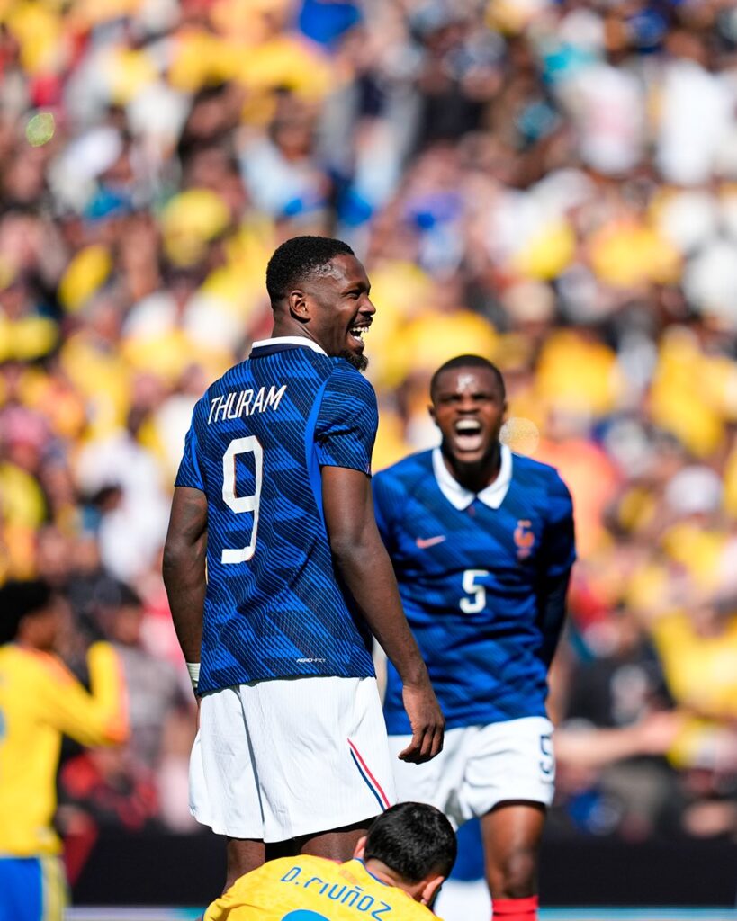 El inicio del partido contra Francia fue discreto por parte de Colombia que presentó errores defensivos los cuales le permitieron a Francia irse arriba en el marcador en el minuto 29 luego del gol de Doue de la selección gala. Posteriormente, al finalizar el primer tiempo, Marcos Thuram amplió el marcador al minuto 41 dejando a Colombia en desventaja y desnudando sus constantes errores en la parte posterior.