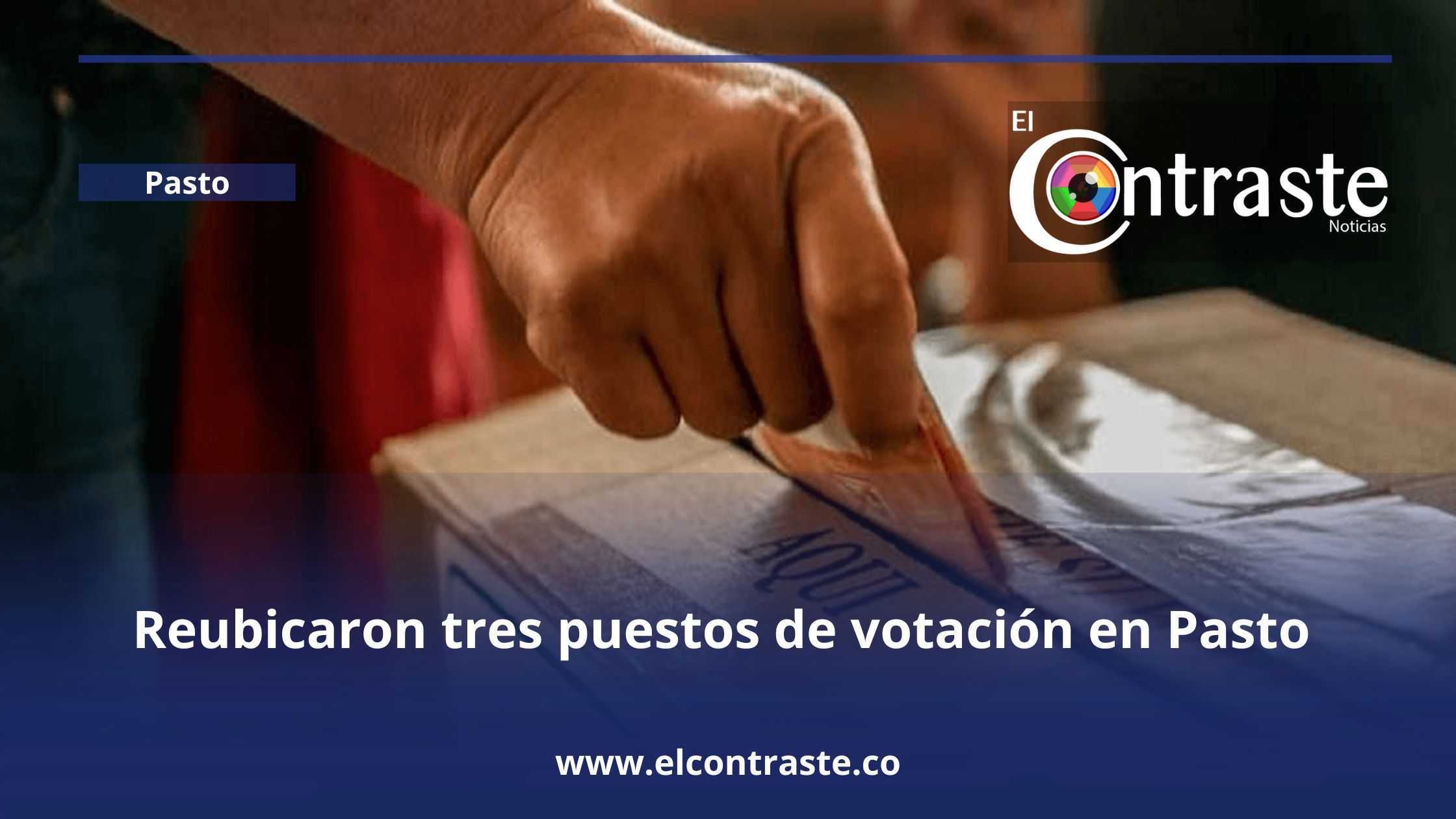 Los dos primeros puestos de votación trasladados fueron los de la sede de la I.E.M San Vicente que ahora se ubicarán en el Liceo de la Universidad de Nariño. Así mismo, la sede de la I.E.M Eduardo Romo Rosero, sede Popular, fue trasladada hacia la I.E.M Ciudadela de Pasto, sede Santa Mónica. Las personas que tenían registradas sus cédulas en estos puestos de votación podrán sufragar en las nuevas ubicaciones.