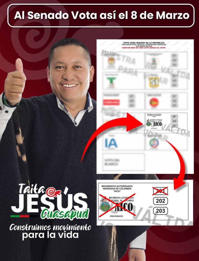 Cuasapud sostiene que su aspiración busca que las curules indígenas en el Congreso estén en manos de líderes con arraigo comunitario, en un país donde más de 115 pueblos indígenas cuentan con una representación limitada.